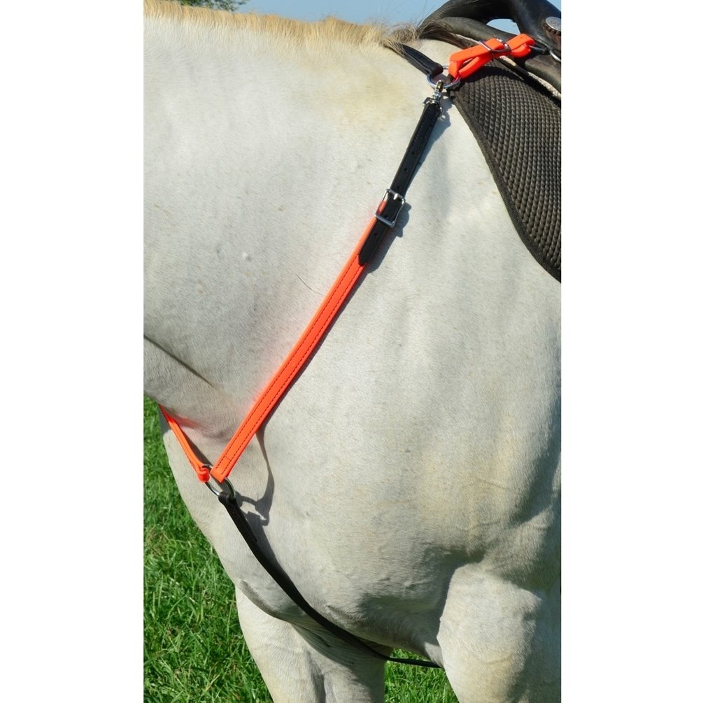 ENGLISH BREAST COLLAR - Mix N Match CLICK HERE for our great blog post on why everyone should use breast collars Made from 3/4" Beta Biothane. Your choice of a mix of any 2 of our Beta Biothane Colors COLOR 1 - Your Color choice of any solid colored Beta Biothane used on shoulder straps & tugs**Pictured in photo as orange** COLOR 2 - Your Color choice of any solid colored Beta Biothane used on belly strap & wither strap. https://www.twohorsetack.com/c-78-english-breast-collars.aspx